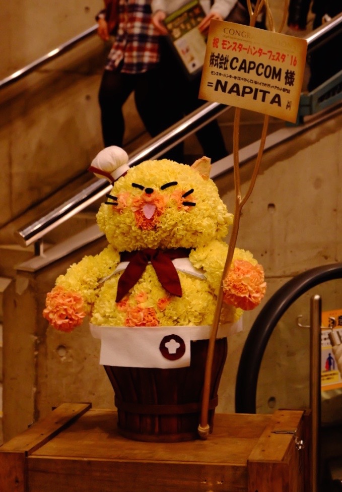 モンハンイベントで有名なNAPITAさんのお花deニャンコックさん&ナビルーさん。