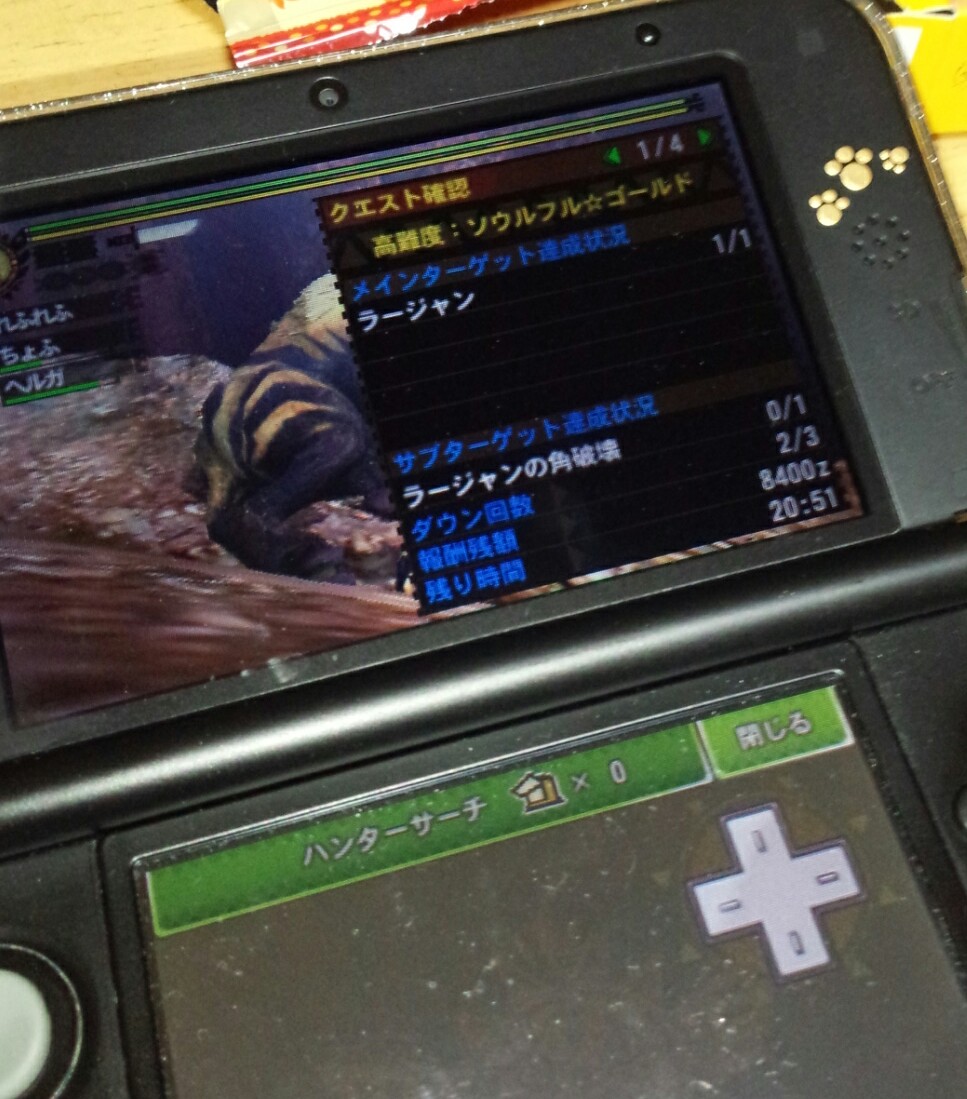 先日からちょこちょこと挑んでいる、MH4Gの例のクエスト「高難度:ソウルフル☆ゴールド」。